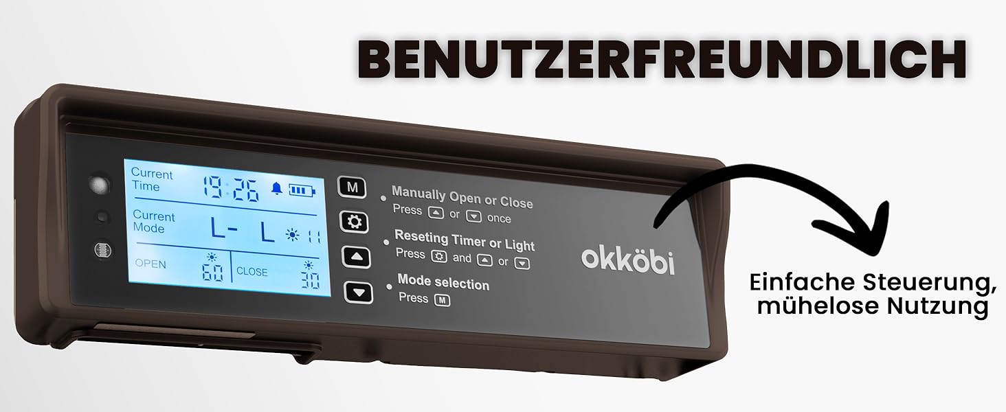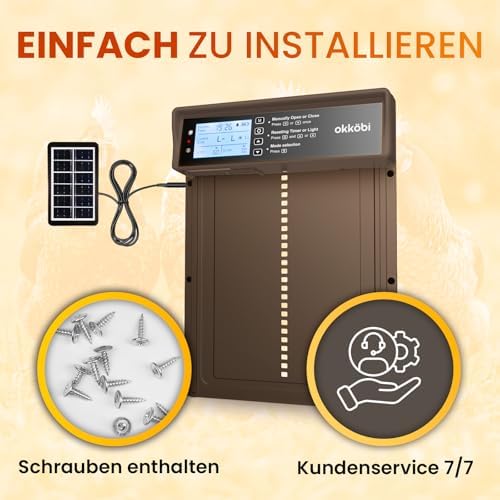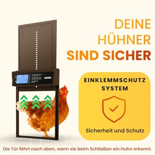 Okkobi Automatische Hühnerklappe Solar mit LCD Display & Fernbedienung – Sicherheit für Ihr Hühnergehege!Okkobi Automatische Hühnerklappe Solar mit LCD Display & Fernbedienung – Sicherheit für Ihr Hühnergehege!