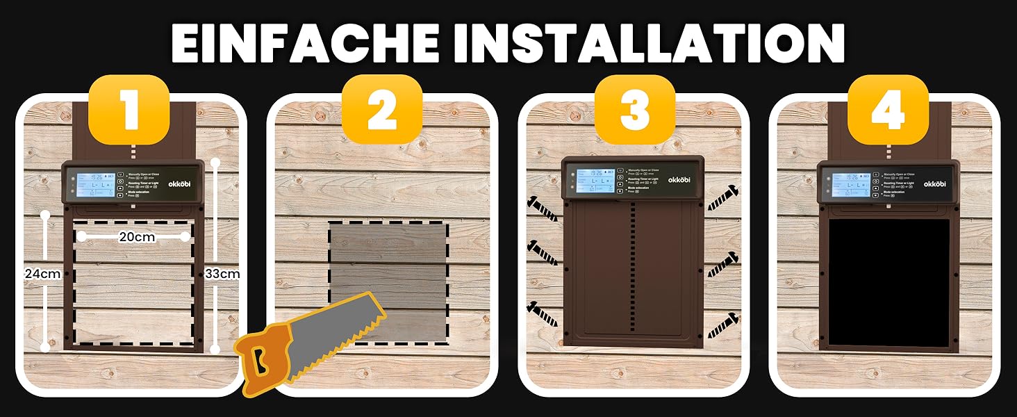 • Einfache Installation: Die unkomplizierte Installation in unter 10 Minuten macht die Klappe für jedes Geflügel geeignet.