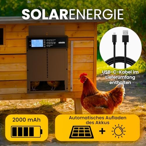 Okkobi Automatische Hühnerklappe Solar mit LCD Display & Fernbedienung – Sicherheit für Ihr Hühnergehege!