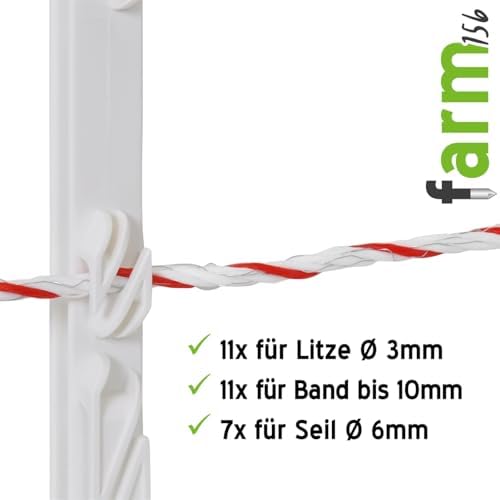 Die 11 Ösen an jedem Pfahl ermöglichen eine flexible und einfache Handhabung, ideal für verschiedene Zaunarten und Anwendungen. Ob für die Pferdehaltung, die Abgrenzung von Weiden oder als Unterstützung für verschiedene Garten- und Landschaftsprojekte – die „farm156“-Pfählen sind eine hervorragende Wahl für zahlreiche Einsatzmöglichkeiten.
