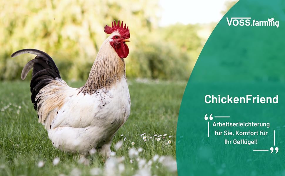 Erleben Sie den Komfort und die Sicherheit, die die VOSS.farming ChickenFriend bietet – für ein zufriedenes und geschütztes Hühnervolk!
