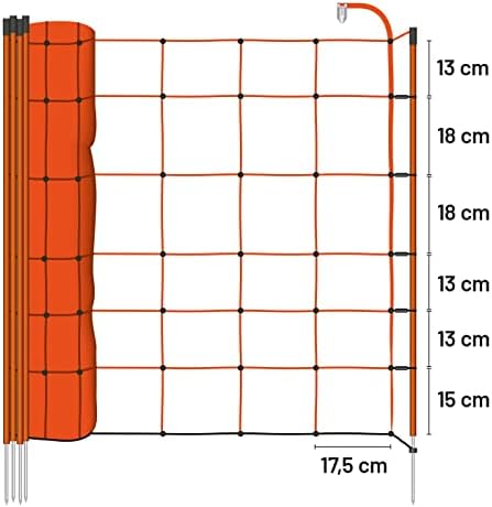 Dank des leuchtenden orangefarbenen Strangs ist unser Netz nicht nur gut sichtbar, sondern auch ein effektives Sicherheitselement für Ihre Tiere. Dies ist besonders wichtig, wenn Sie Tiere wie Schafe, Schweine oder Hunde ohne Hörner halten, da es ihnen hilft, den sicheren Bereich klar zu erkennen.