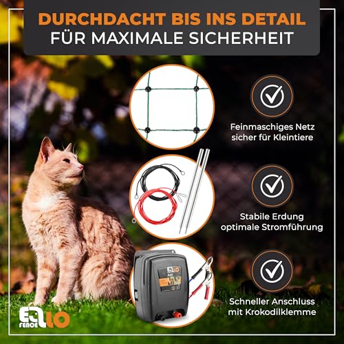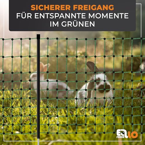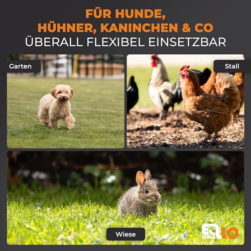 Das leistungsstarke, stromführende Netz gewährleistet, dass Ihre Kleintiere sicher im Gehege bleiben. Durch die beeindruckende Funktionalität des Zauns wird das Entweichen zuverlässig verhindert, während gleichzeitig ungewollte Eindringlinge ferngehalten werden. Diese Verletzungsrisiko-freie Sicherheitsaustattung bietet Ihnen und Ihren Tieren ein beruhigendes Gefühl.